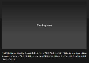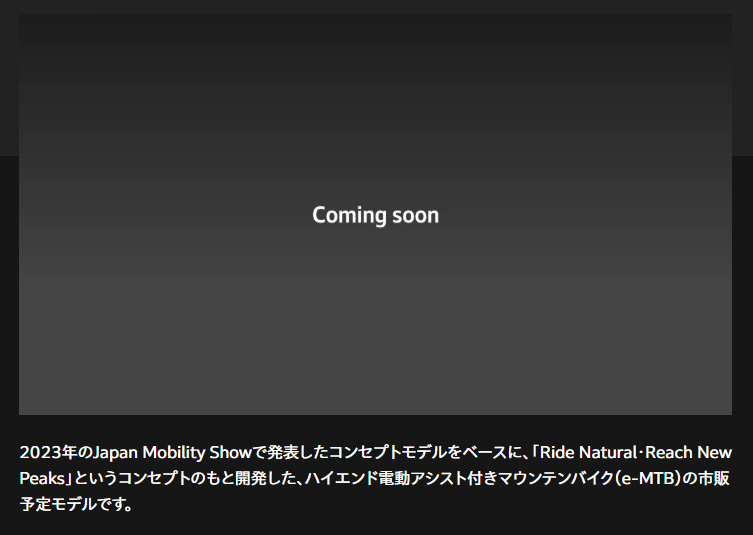 2023年のJapan Mobility Showで発表したコンセプトモデルをベースに、「Ride Natural・Reach New Peaks」というコンセプトのもと開発した、ハイエンド電動アシスト付きマウンテンバイク(e-MTB)の市販予定モデルです。
