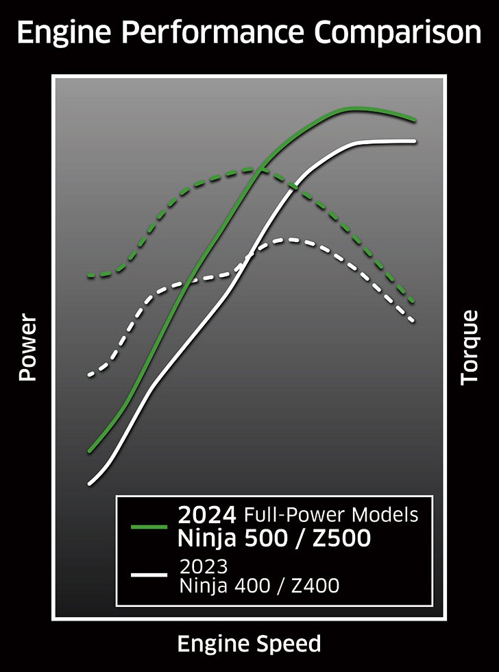 こちらがNinja 500のパワーカーブです。上記の通りに似てはいますが形が違います。