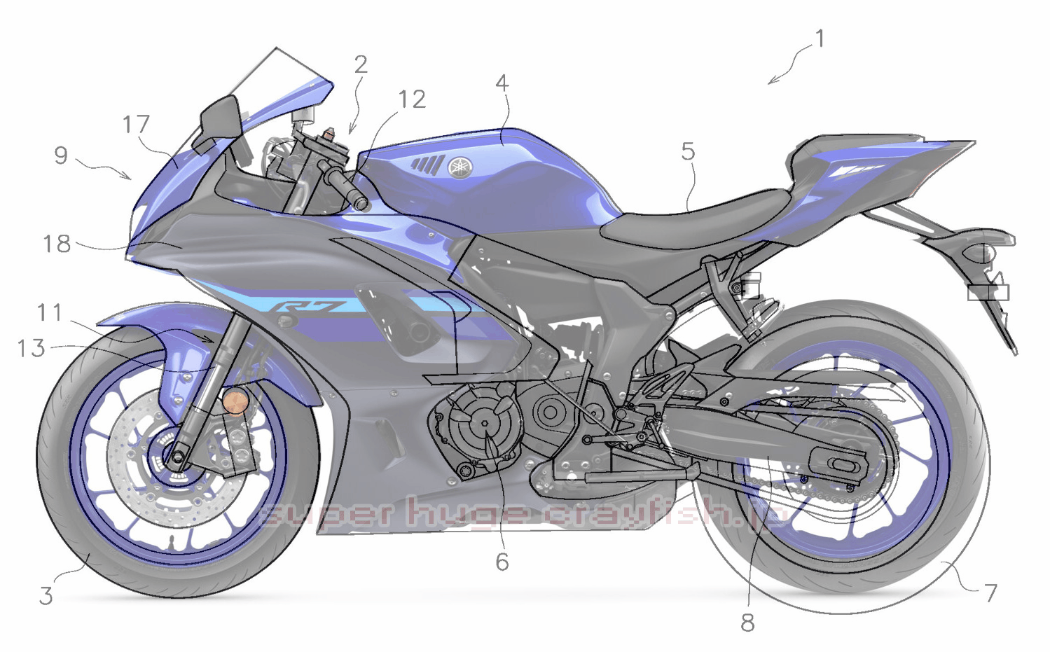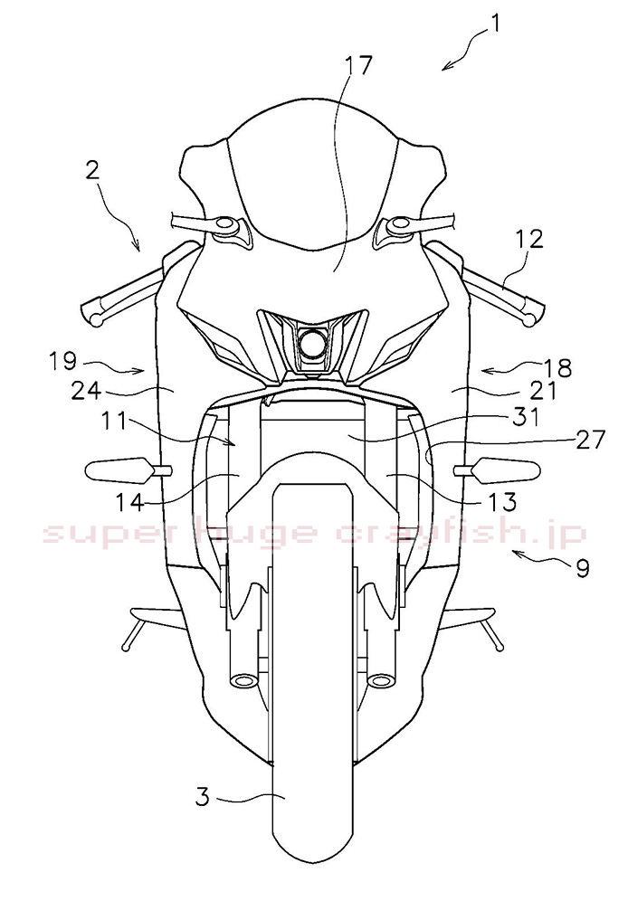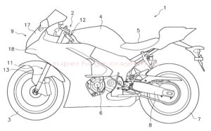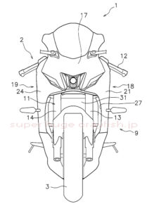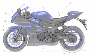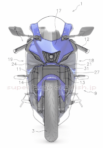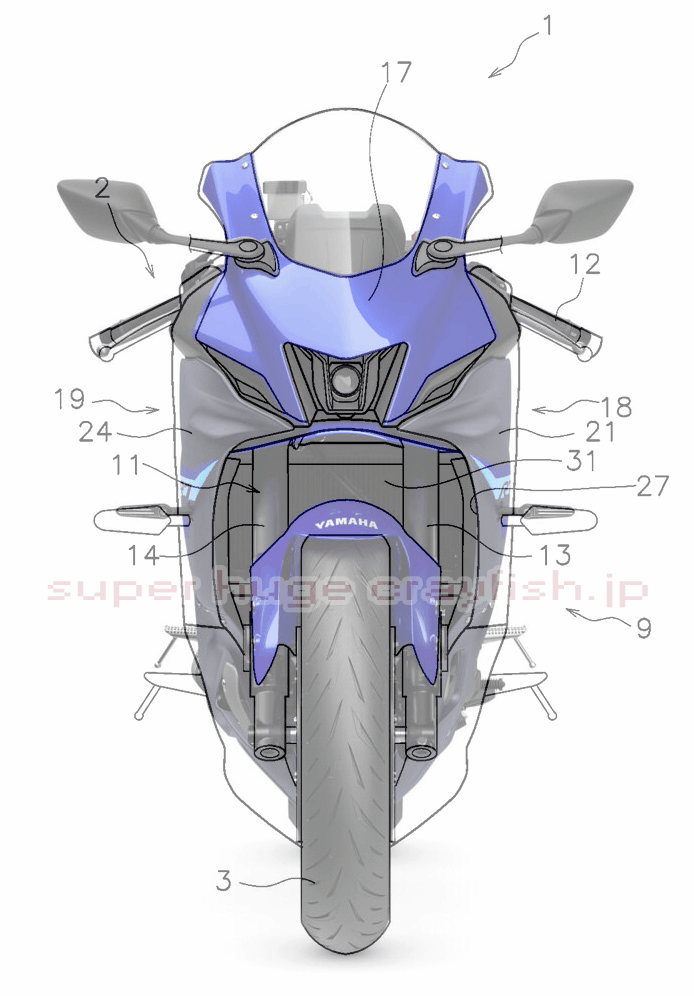 その特許に載ってる車両の図がこちら。あ、YZF-R7ですね。