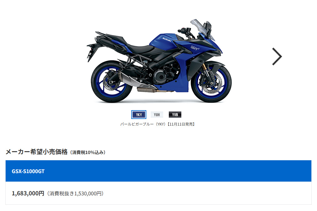 ちなみにGSX-S1000GXのみ2026年モデルが発表されていませんが、そもそもGSX-S1000GXは2025年モデルの発表時期が他のGSX-S1000系モデルと違います。