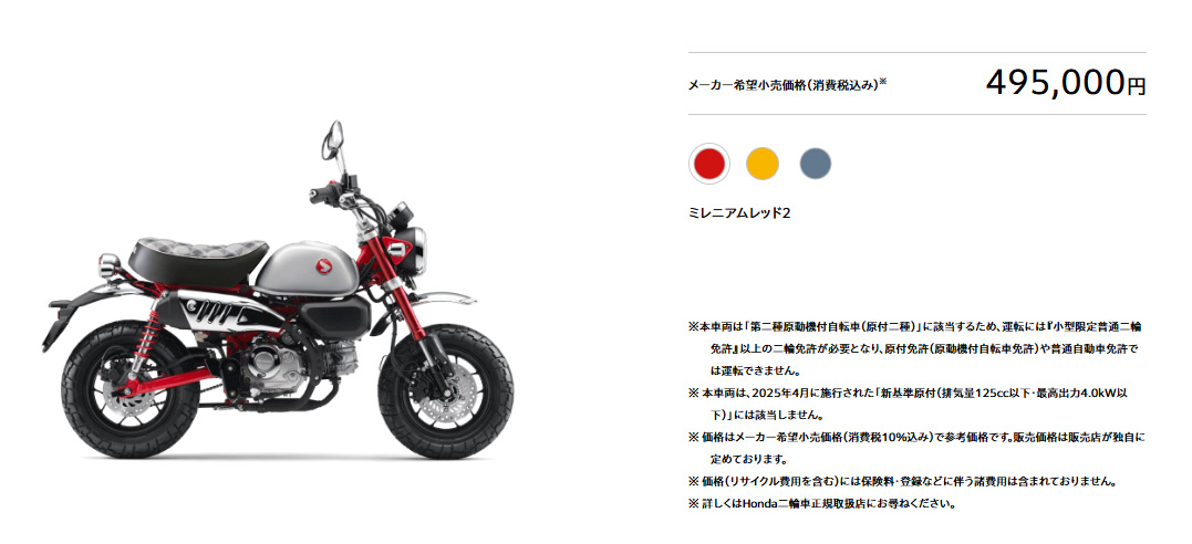 2026年モデルのMonkey125(モンキー125)の発売日