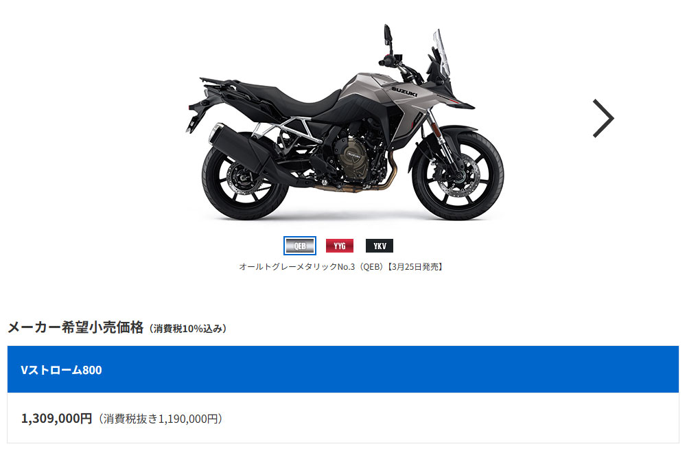 2026年モデルのV-Strom800(Vストローム800)の価格