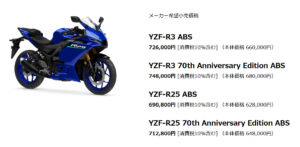 2026年モデルのYZF-R25の価格