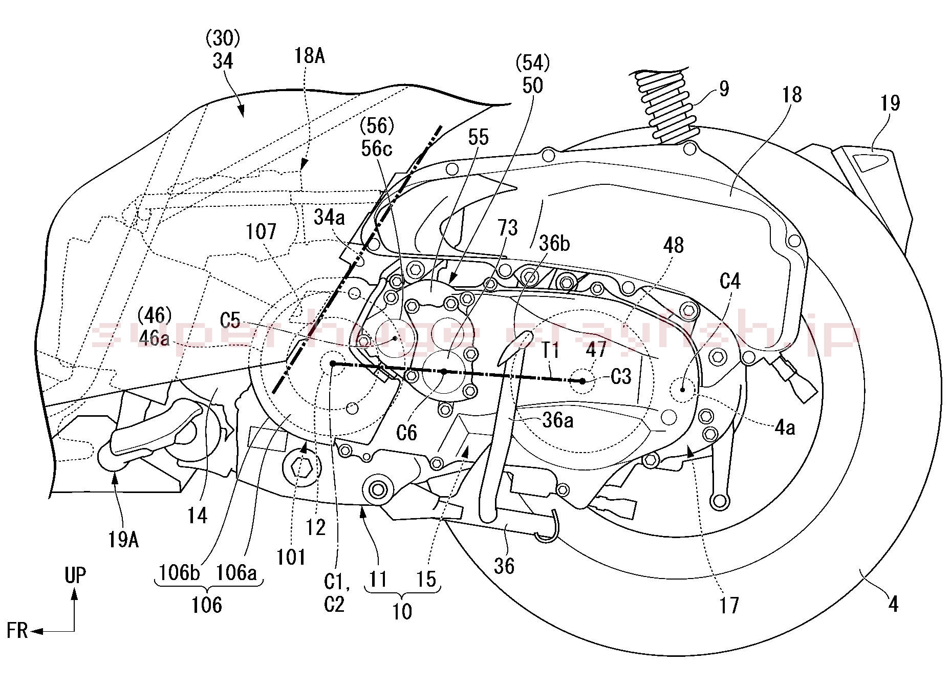 ホンダの新型PCX向け電子制御CVTの特許。YECVT的な。