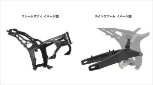 鋼管ダイヤモンドフレームです。スイングアームはアルミ。