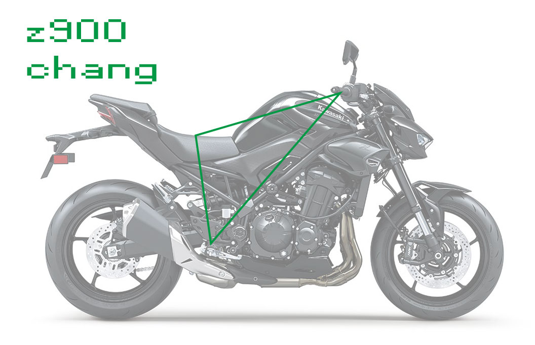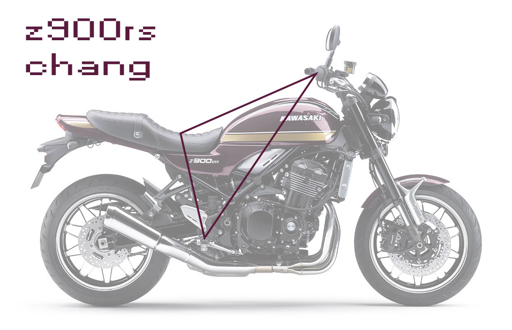 Z900と同系フレームですが、リアフレーム部分やステム部分が変更されています。