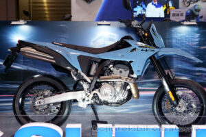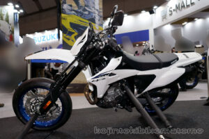 DR-Z4SMはこんな感じで一等地に展示されていました。一番いい場所ですかね。それだけ注目度の高い車両ってことなんでしょうね。