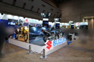 スズキって毎回こういう角度つけた車両で記念撮影どうぞって感じで展示してますよね。名物なのかな?