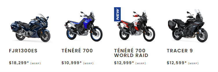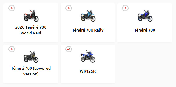 私がモーターサイクルショーで聞いた話ですと、旧型のTenere700 World Raidはタンクが日本の法規に合わないから日本では売れないとのことでした。