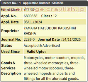 考えられる全てのYZF-Rが出願されていますので、とりあえず全部出願したんだろうって当時は認識していました。