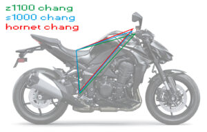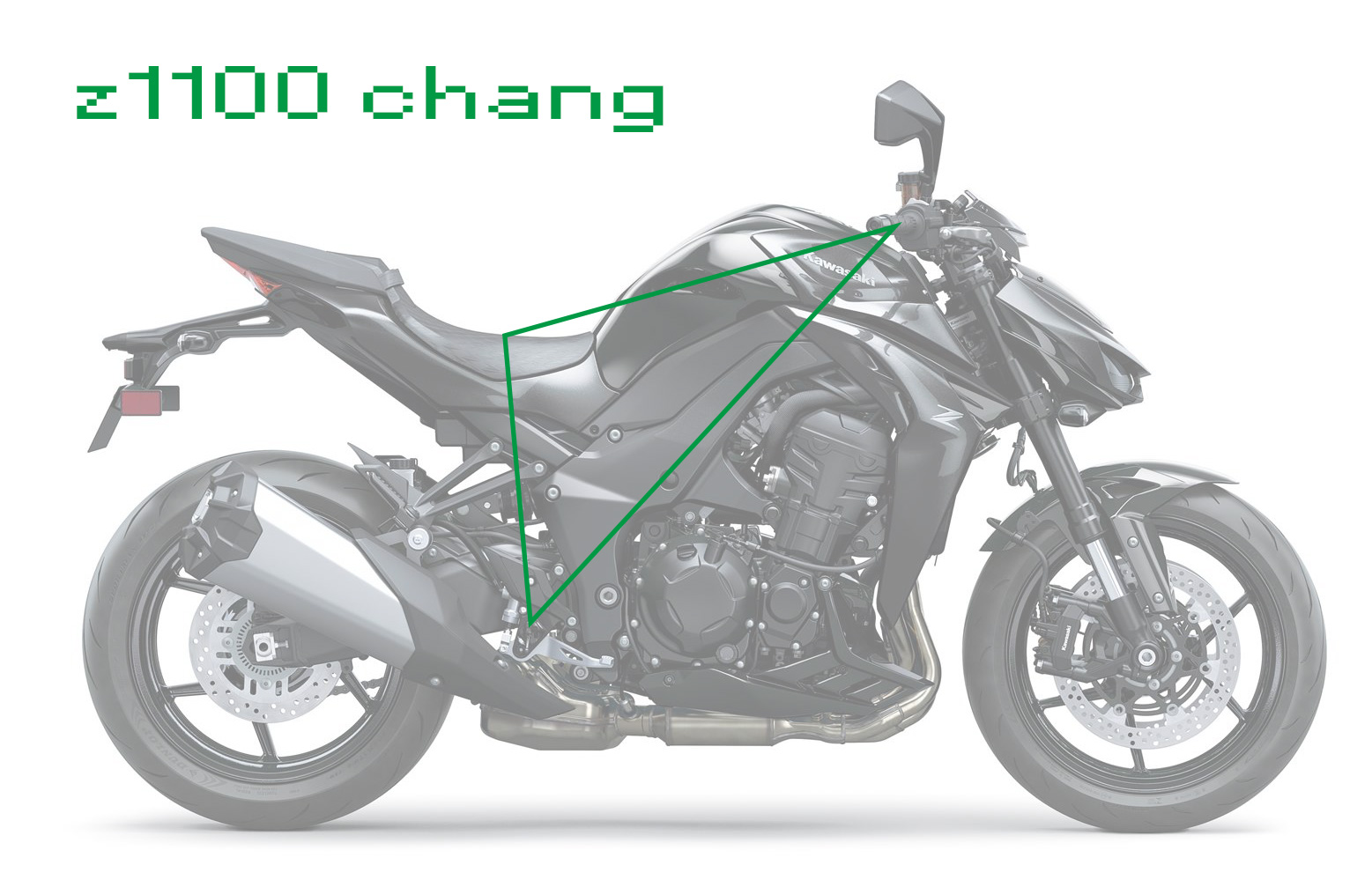 一番馬力があるCB1000 HORNETがハンドルが高く、馬力が低いZ1100がハンドルが低くて遠いです。へー
